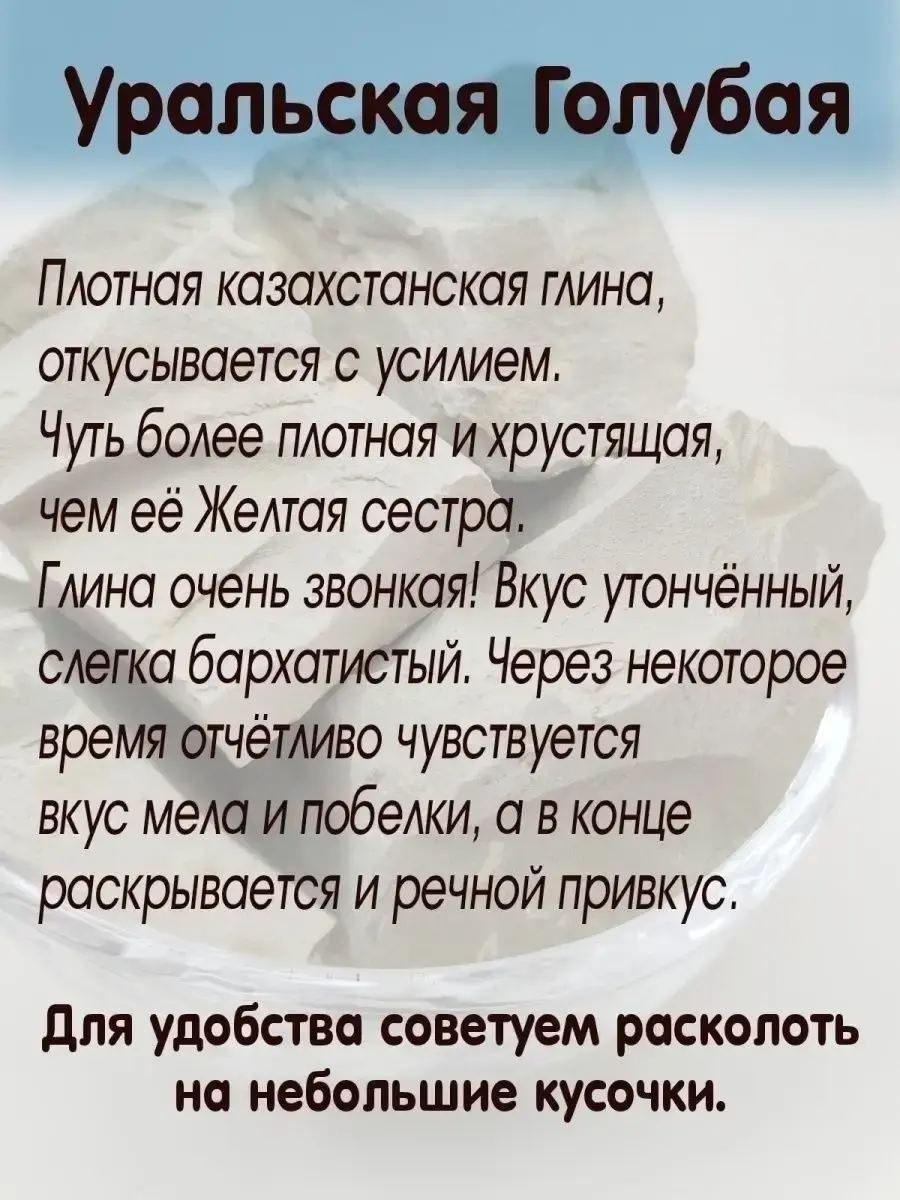 Особое внимание уделяется качеству сырья: натуральная белая узбекская глина проходит строгий контроль перед попаданием к потребителю. Это гарантия безопасности использования продукта как наружного средства по уходу за лицом или съедобного компонента рациона.