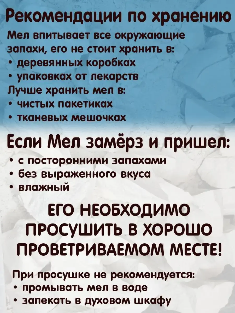 Этот съедобный мел создан природой как и глина, идеально подходит для разнообразного использования в школьной и творческой среде. Белоснежные меловые камни обладают натуральным составом, что делает их безопасными и полезными для здоровья, включая женщин в период беременности. Благодаря экологичности продукта он отлично вписывается в концепцию eco-продуктов и способствует поддержанию здорового питания.