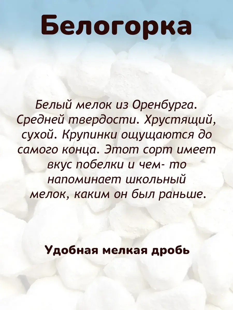Мелки природные. Подойдет как для беременных подарок. Мел для еды белый, мел школьный. Различные сорта имеют разные вкусы и текстуры: твердый или мягкий, жирныйили сухой. Мел съедобный набор поможет найти самые любимые сорта. Мел съедобный для беременных из нашего магазина подходит беременным. Портновский мел, а так же кальций для детей. Перед покупкой мел пищевой кусковой внимательно ознакомьтесь с описанием на втором фото товара. Мел чистый пищевой кусковой со вкусом сливки. Съедобный крем из белой или голубой глины прекрасно дополнит вкусовые качества. Чистый пищевой мел особенно по душе придется беременным, так же как пищевая природная глина. Кусочки мела имеют средний размер, чтобы при желании можно было, как отгрызать от большого куска, так и наколоть его на небольшие камушки.