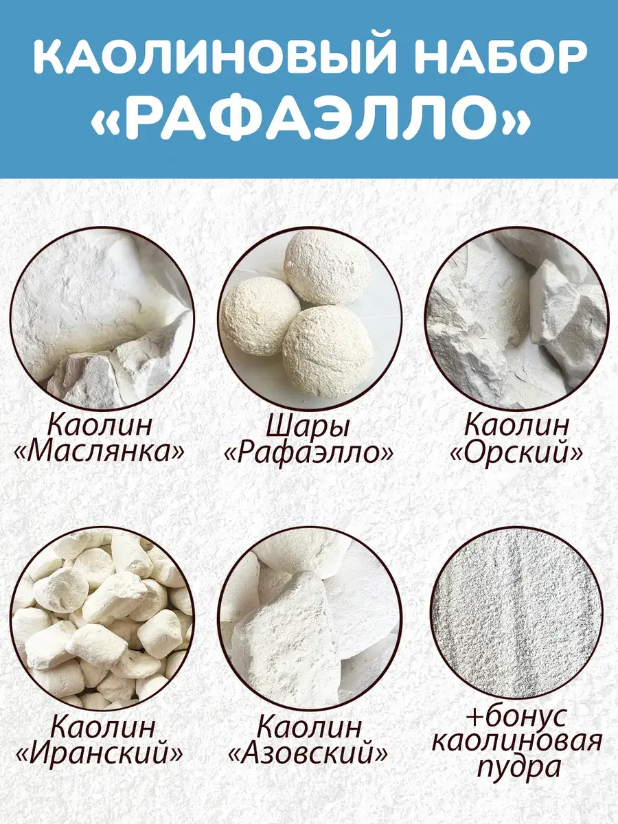 Каолиновый набор "Рафаэлло" - Маслянка, Орский, Иранский, Азовский, шары, пудра