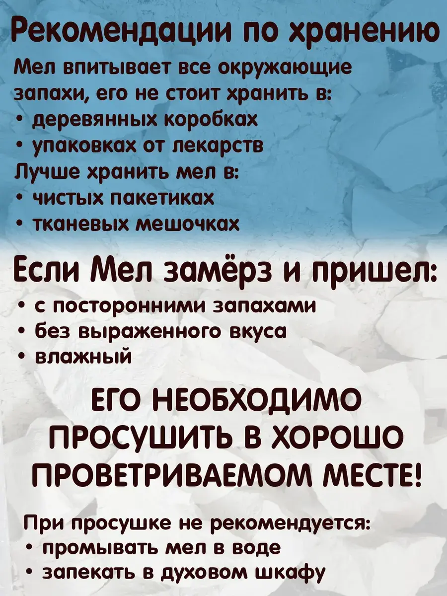 Отличный выбор для кормления попугаев благодаря своей пищевой безопасности и натуральному составу. Кроме того, меловая глина полезна для портновского шитья, позволяя легко отмечать ткани без вреда для материала.